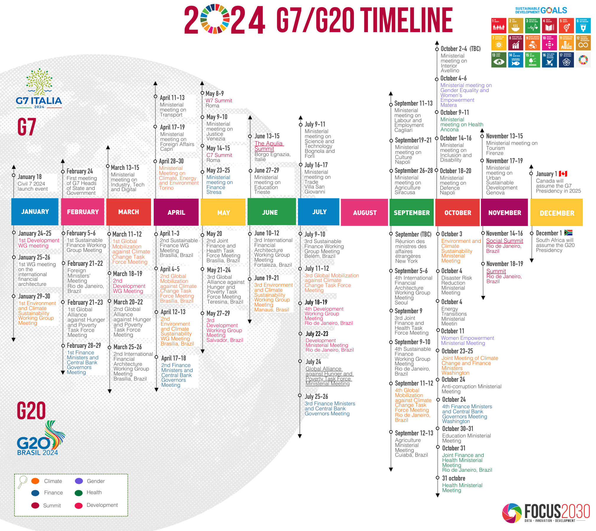 Discover a list of all the major events and ministerial meetings to be held in 2024 during the G7 Summit under the Italian Presidency and the G20 Summit under the Brazilian Presidency.