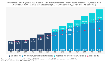 Alcanzar este objetivo del 0,5% implicaría un aumento de la AOD española por unos 4.500 millones de dólares respecto a las cifras de 2018: una cuantiosa inversión que permitiría a España retomar un papel de liderazgo en la escena internacional y contribuir de forma determinante a la consecución de los objetivos de desarrollo sostenible.