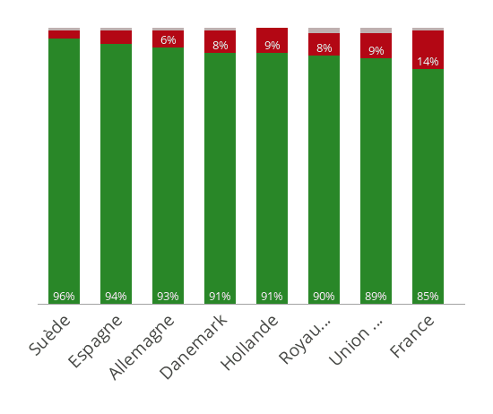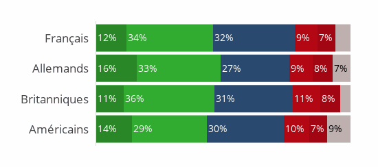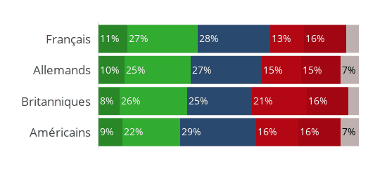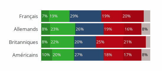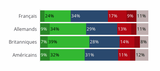 Dans les quatre pays, France, Allemagne, Royaume-Uni et États-Unis, le pourcentage des citoyens déclarant