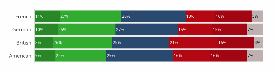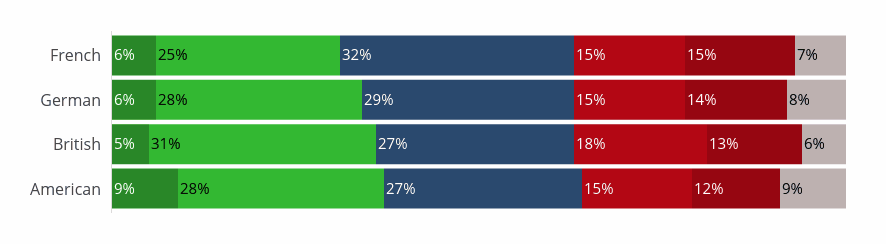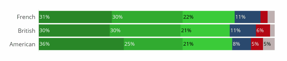French and British people fall under the average, with 26% and 29% respectively agreeing that ODA should be increased toward developing countries.