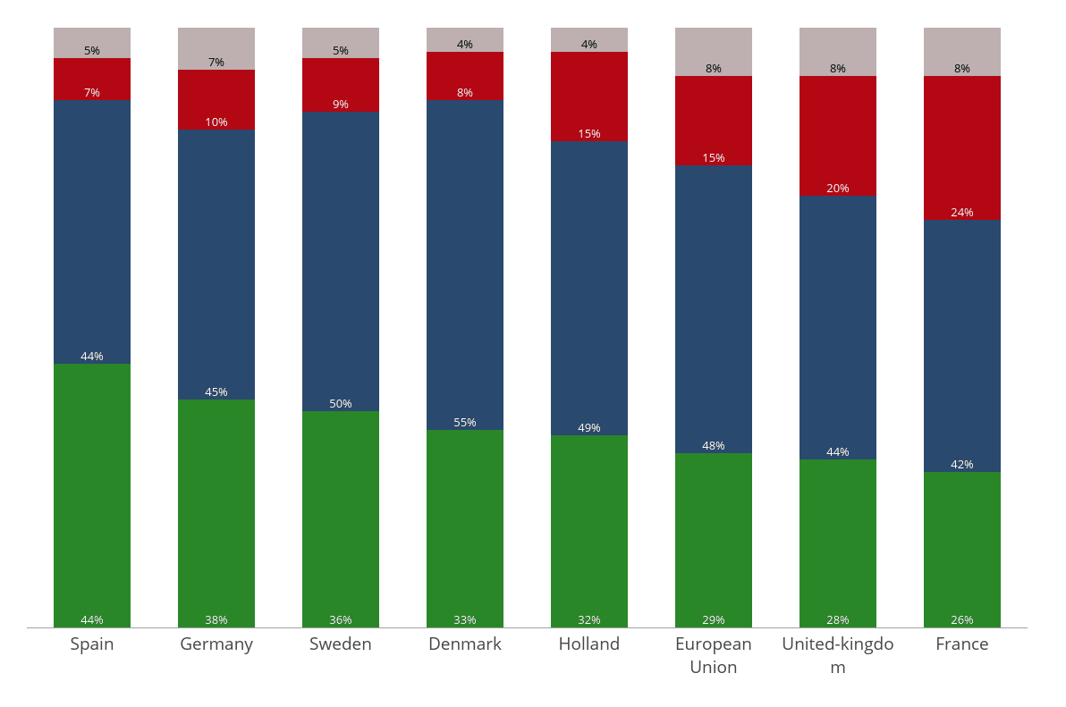 Opinion poll based on answers from 27732 respondents from all 28 countries, representative of the adult population of each country, ie 1035 people in Spain. Source: ec.europa.eu