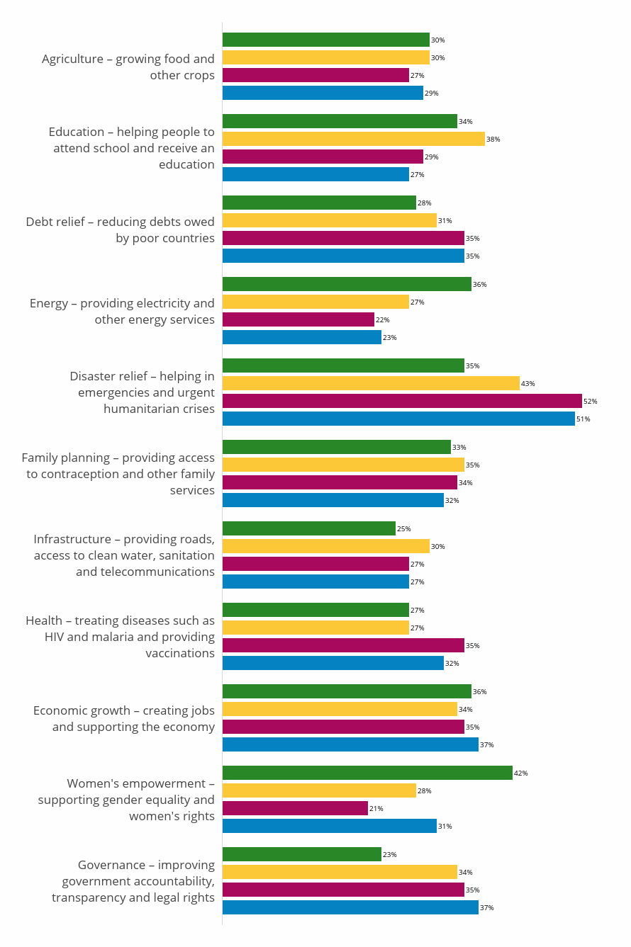 Whatever the reason, there is a clear difference in public opinion about whether developed countries should be giving more to developing countries.