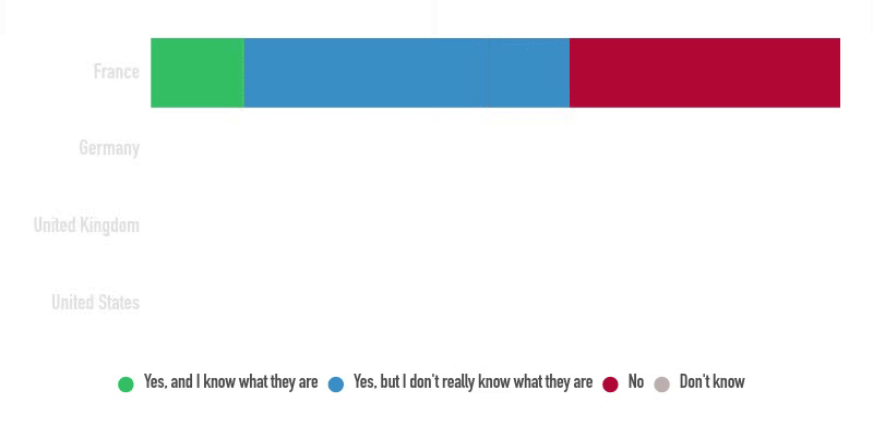 According to our latest survey which took place in October 2023, the level of knowledge of the SDGs still suffers from a limited notoriety in the four countries where we regularly conduct the study, .i.e. France, Germany, the UK and the US.